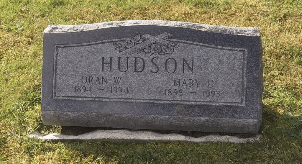 Gravestone of Oran W. Hudson and Mary C. Hudson at Riverside Cemetery in Lincoln, New Hampshire